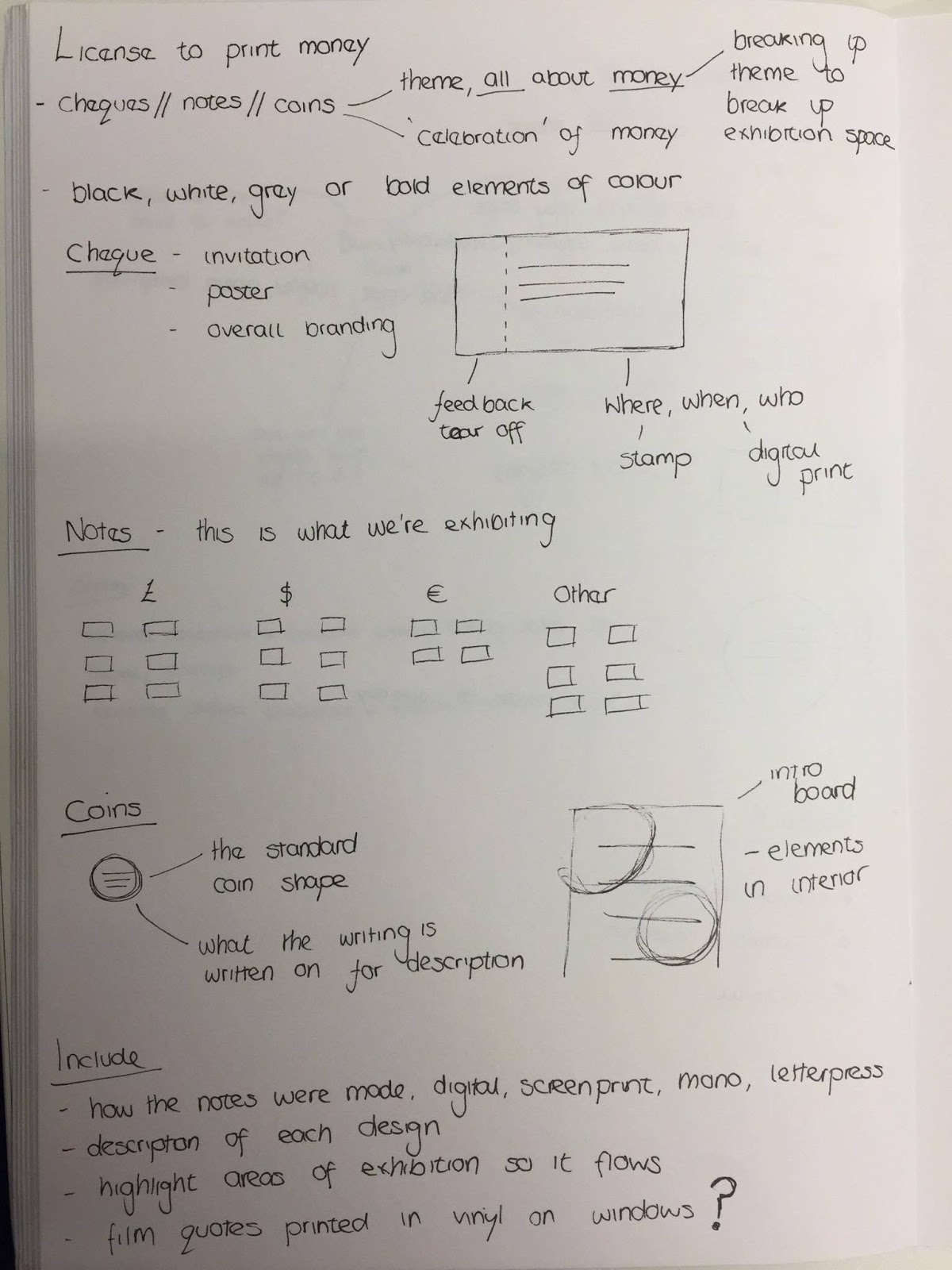 Once we returned from Easter, the groups workflow from other briefs effected this one but this wasn't considered a failure I believe, because the work may have been disjointed if we proceeded with it over the easter break. We refined our concept more, considering what imagery to include and tone of voice. We decided upon using imagery of Bank House because of its relatively bold stature and wanted to have a playful tone of voice that was straight to the point. At this stage we decided to keep the name 'License to print money'.
